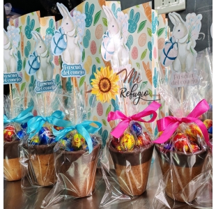 Vaso de galleta con huevitos de chocolate macizo
